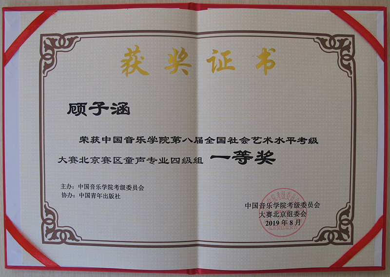 顾子涵,童声专注四级组一等奖